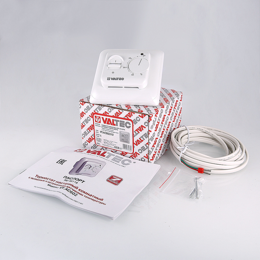 - Паспорт, руководство по эксплуатации: Термостат комнатный c датчиком температуры пола (PDF, 681 КБ)