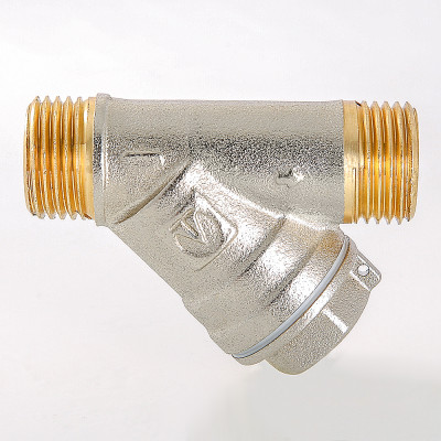 Фильтр механической очистки косого типа. Может устанавливаться в горизонтальном и вертикальном (движение потока – сверху–вниз) положении. Корпус и пробка изготовлены горячим прессованием из латуни марки CW617N (европейский стандарт EN 12165) и никелированы. Между ними предусмотрена тефлоновая уплотнительная прокладка. Пробка оснащена отверстием для пломбировки. Размер ячеек сетки фильтрующего элемента – 500 мкм, максимальное рабочее давление – 20 бар. Максимальная рабочая температура фильтруемой среды – 150 °C. Резьба присоединений – наружная/наружная, 1/2".