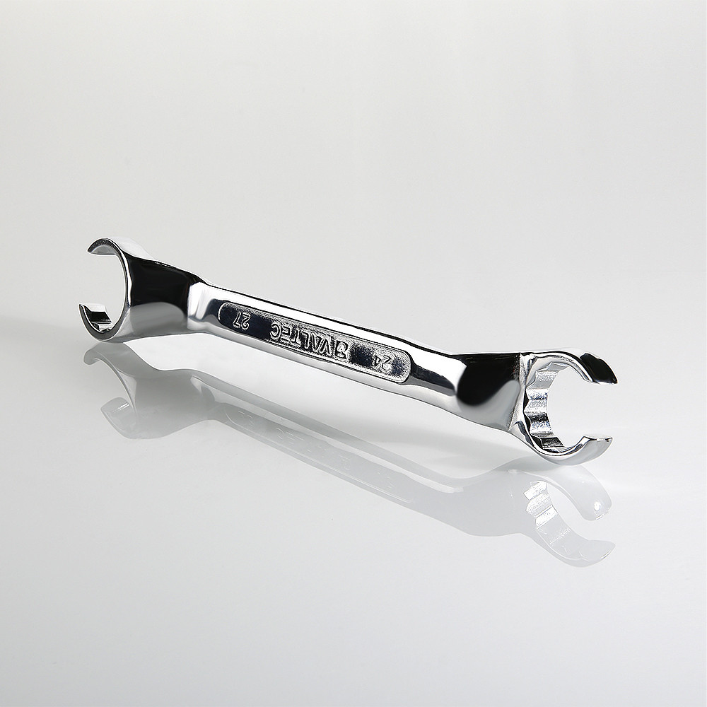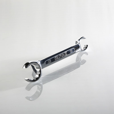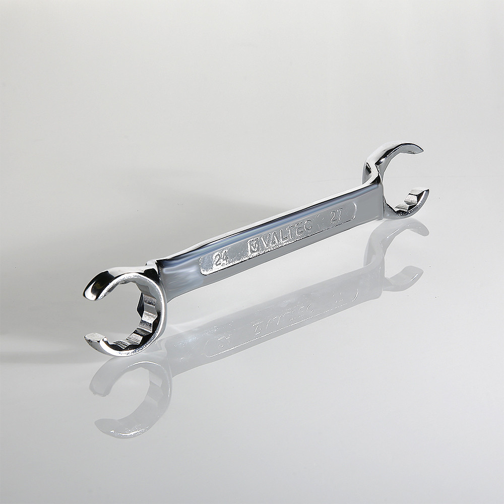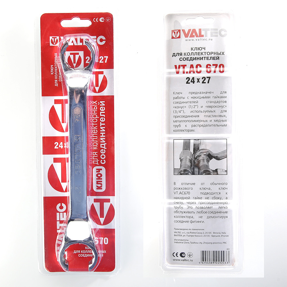 Ключ для коллекторных фитингов – инструмент, значительно облегчающий подключение трубных петель к коллекторам, особенно необходимый монтажникам систем водяного теплого пола, которым часто приходится монтировать оборудование в стесненном пространстве распределительного шкафа. Головки ключа имеют разрезы, через которые удобно продеть присоединенную трубу, предварительно наживив накидную гайку соединителя на отвод коллектора. Конфигурация головки позволяет плотно охватить гайку и произвести ее затяжку. Ключ – двухсторонний, обеспечивает монтаж/демонтаж фитингов стандартов «конус» (1/2”), «евроконус» (3/4”).