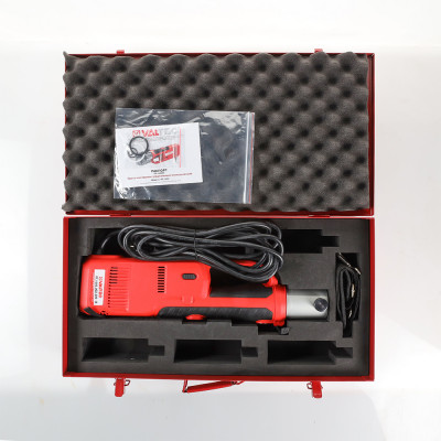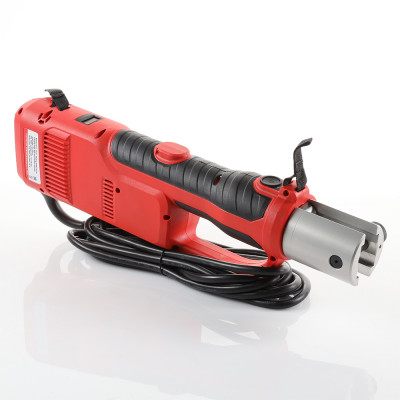 Инструмент оснащен электрогидравлическим приводом мощностью 490 Вт, работающим от источника переменного тока напряжением 220–240 В и создающим давление опрессовки в 3,2 т. Предусмотрены автоматический реверс, звуковая и световая сигнализация об ошибках в работе, функции самодиагностики при включении инструмента в сеть, световая сигнализации о приближении срока/необходимости проведения технического обслуживания (периодичность – 30 тыс. циклов). Вес инструмента – 4,1 кг.
