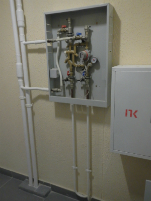 - Автоматическое регулирование количества теплоносителя, поступающего в квартиру (при дополнительном оборудовании сервоприводом и квартирными термостатами)
