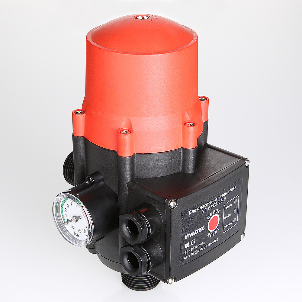 Блок насосной автоматики (пресс-контроль) VT.EPC2.06.0 является комбинацией реле минимального давления с реле протока и служит для управления насосами водоснабжения, их защиты от работы «на закрытую задвижку» и в режиме «сухого хода».