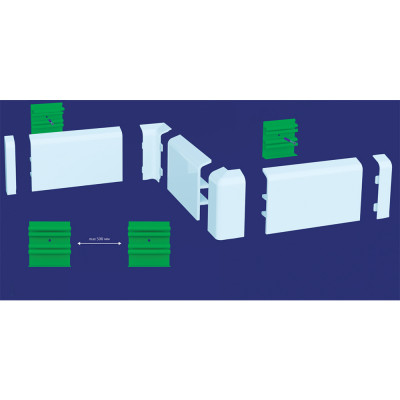 Плинтус устанавливается на клипсы (приобретаются отдельно), расположенные каждые 50 см, путем защелкивания.