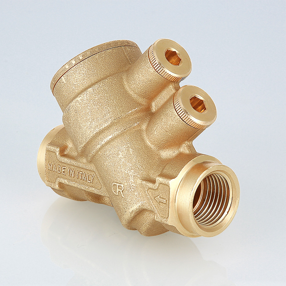 Стабилизатор состоит их двух частей: латунного корпуса VT.PICV с измерительными патрубками, в который устанавливаются сменные картриджи VT.PICC для настройки требуемого расхода. Таким образом, в случае внесения изменений в систему отопления (добавление или удаление отопительных приборов или ветвей) достаточно просто заменить или перенастроить картридж клапана, не снимая с трубопровода сам корпус стабилизатора.