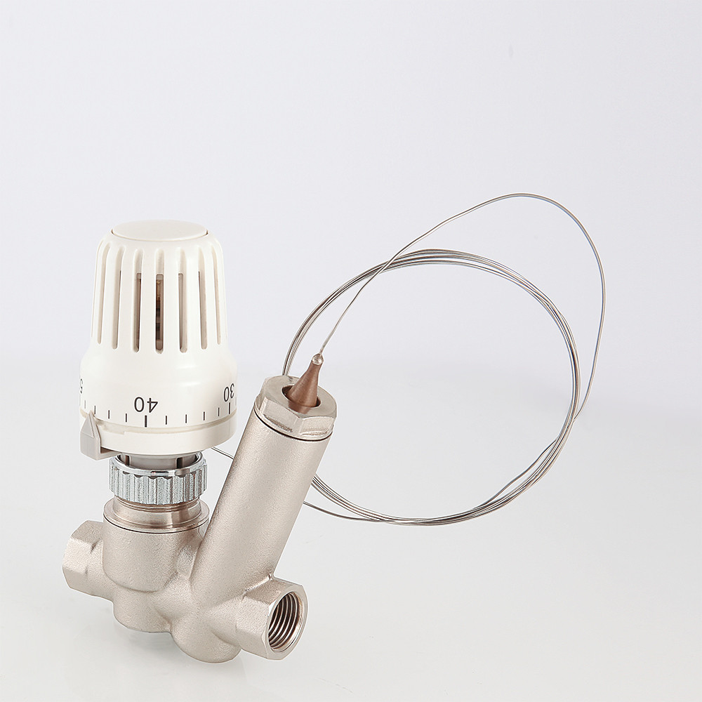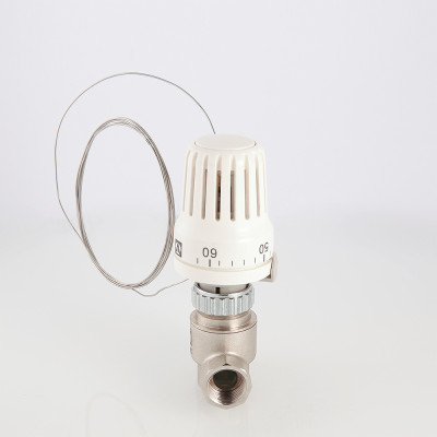 Клапан поставляется в комплекте с термоголовкой VT.3011 (с выносным датчиком и монтажной гильзой для датчика). Термостатическая головка имеет функцию фиксации настройки.