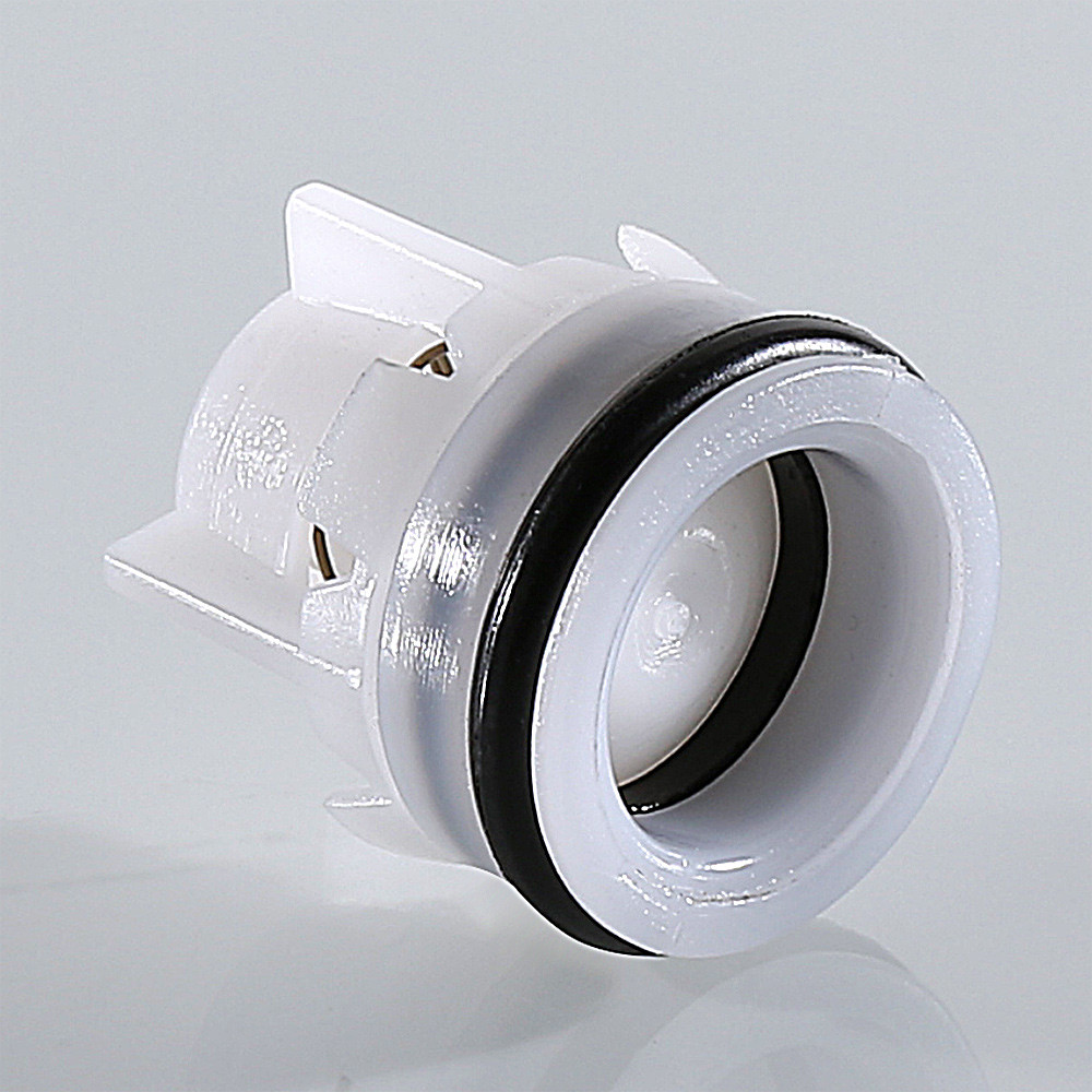 Клапан состоит нейлонового корпуса, штока с золотником и пружины из нержавеющей стали AISI 316, узел седла – из нейлоновой седельной обоймы и тефлонового седла.