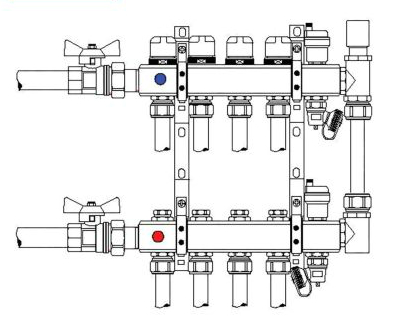Коллекторный байпас «замыкает» поток теплоносителя напольного, радиаторного отопления, другой климатической системы, направляя жидкость к обратному коллектору, когда расход через греющие петли становится ниже заданного значения. Это защищает циркуляционный насос от работы «на закрытую задвижку», сохраняет гидравлические характеристики системы, циркуляцию при перекрытии коллекторных петель. Действие байпаса основано на применении перепускного клапана.