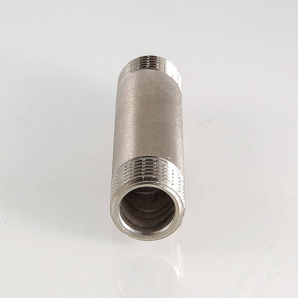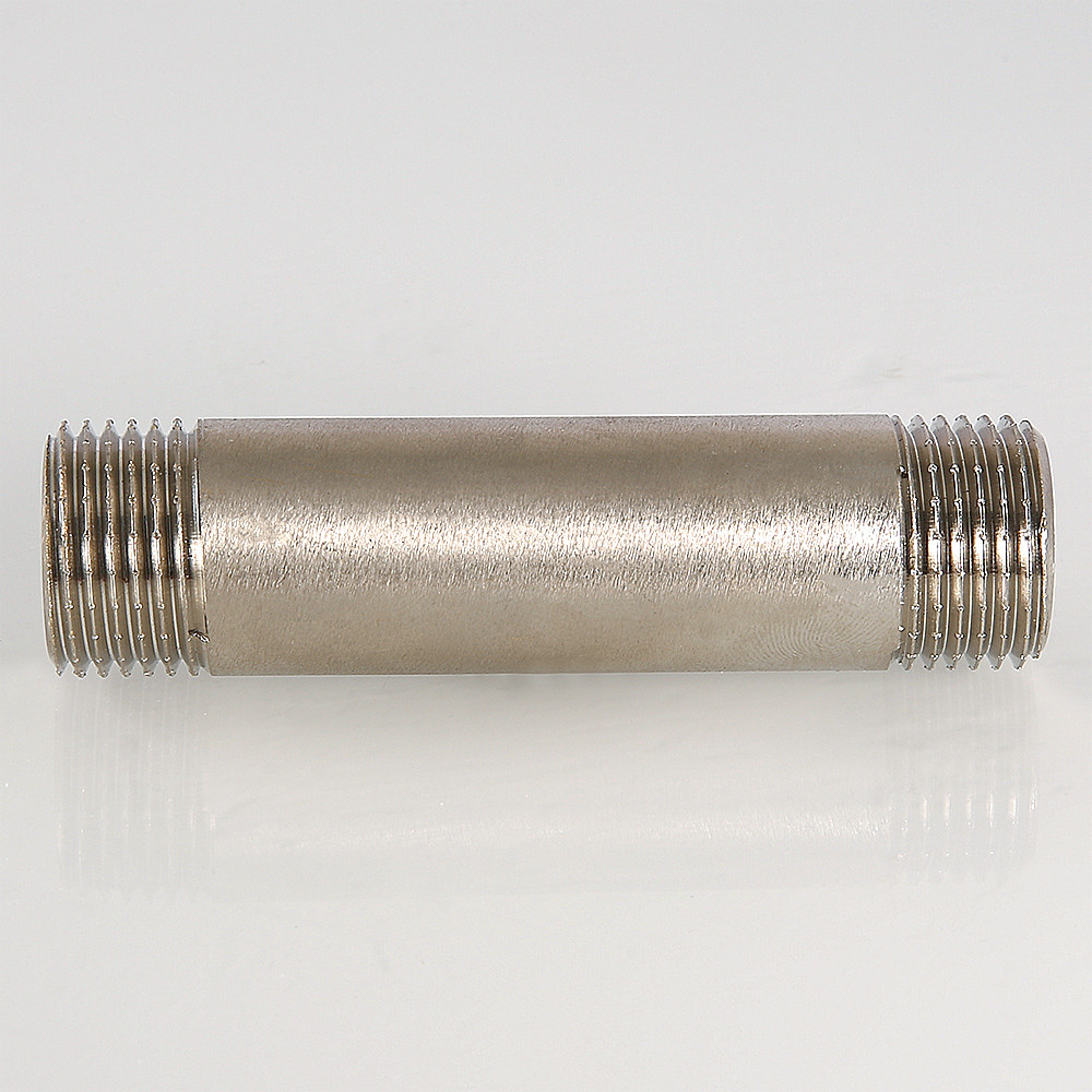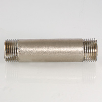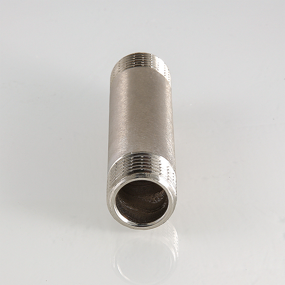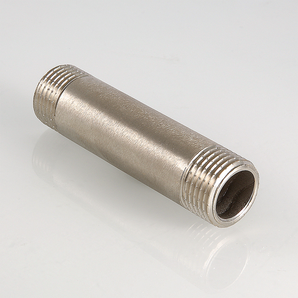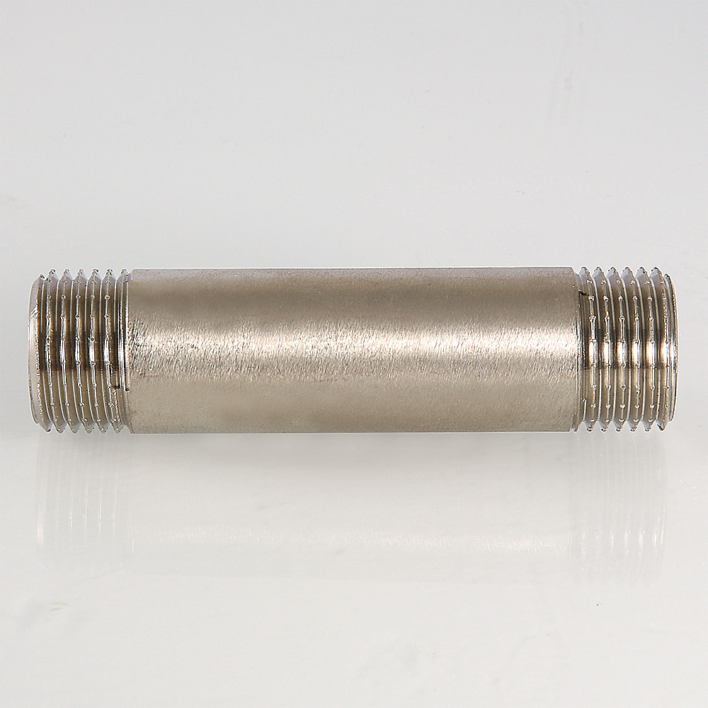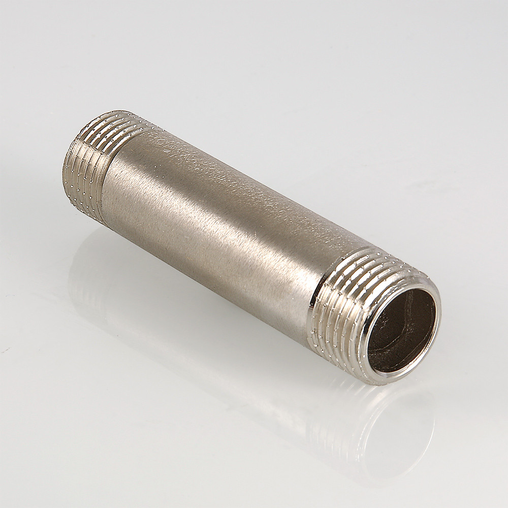 Латунный никелированный резьбовой фитинг с двухсторонней наружной трубной цилиндрической резьбой по ГОСТу 6357 (ISO 228, EN 10226). Длина – от 60 до 250 мм, диаметр – 1/2".