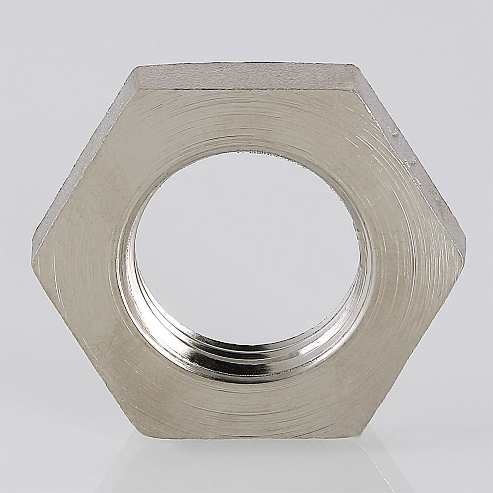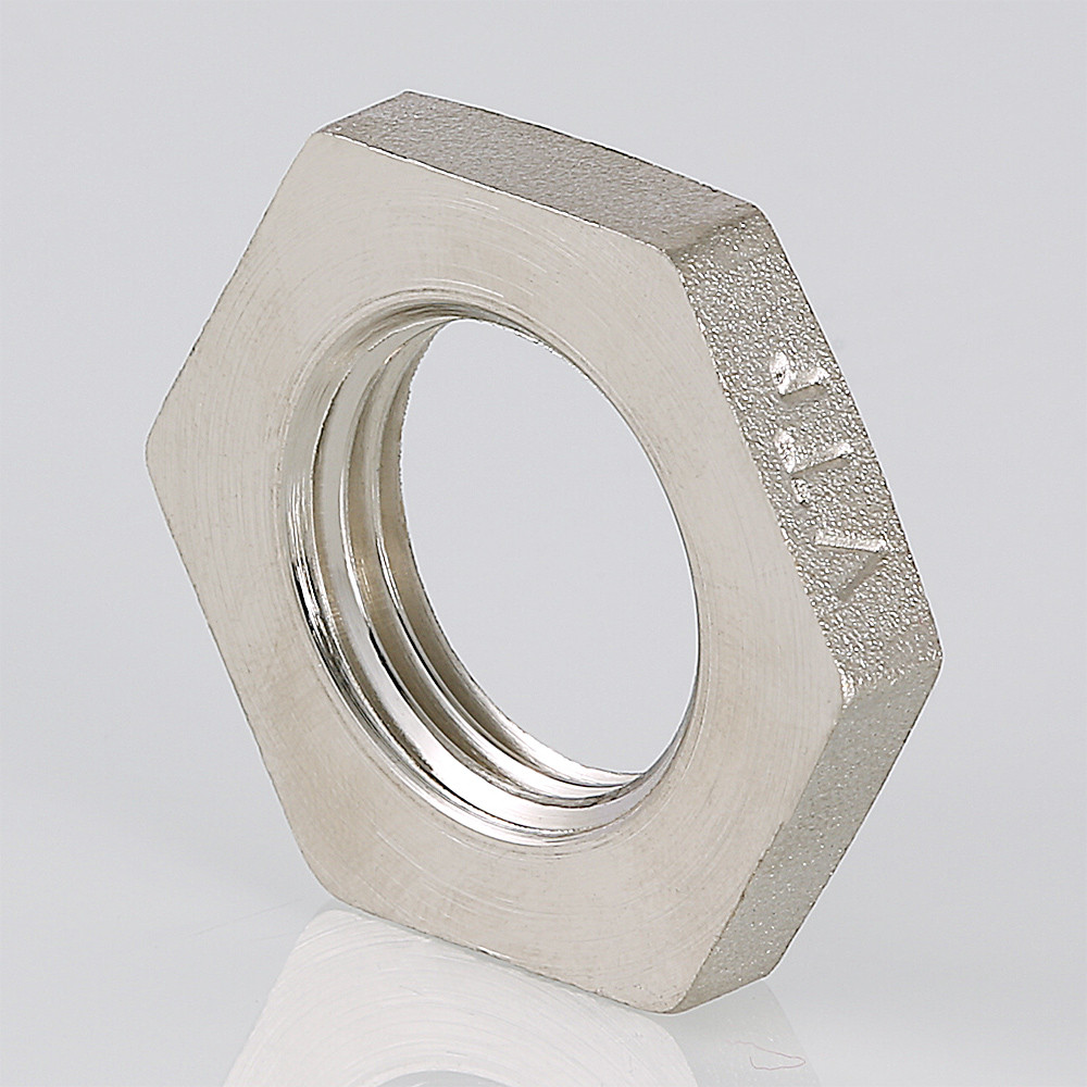 Контргайка является наиболее недорогим, но эффективным вариантом изделий, гаечных замков, предотвращающих раскручивание резьбовых элементов (муфты, сгоны) трубопроводов вследствие вибрации, гидроударов и т.д. Форма, размеры контргайки соответствуют ГОСТу 8968-75. Латунная никелированная контргайка ГОСТ VALTEC имеет широкую рабочую поверхность, которая повышает надежность фиксации соединения (трение между гайкой и фитингом препятствует расконтриванию), помогает повысить его герметичность, скрыть выступающий уплотнитель. Резьба – трубная цилиндрическая, совместимая с наружной конической по ГОСТ 6211.