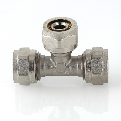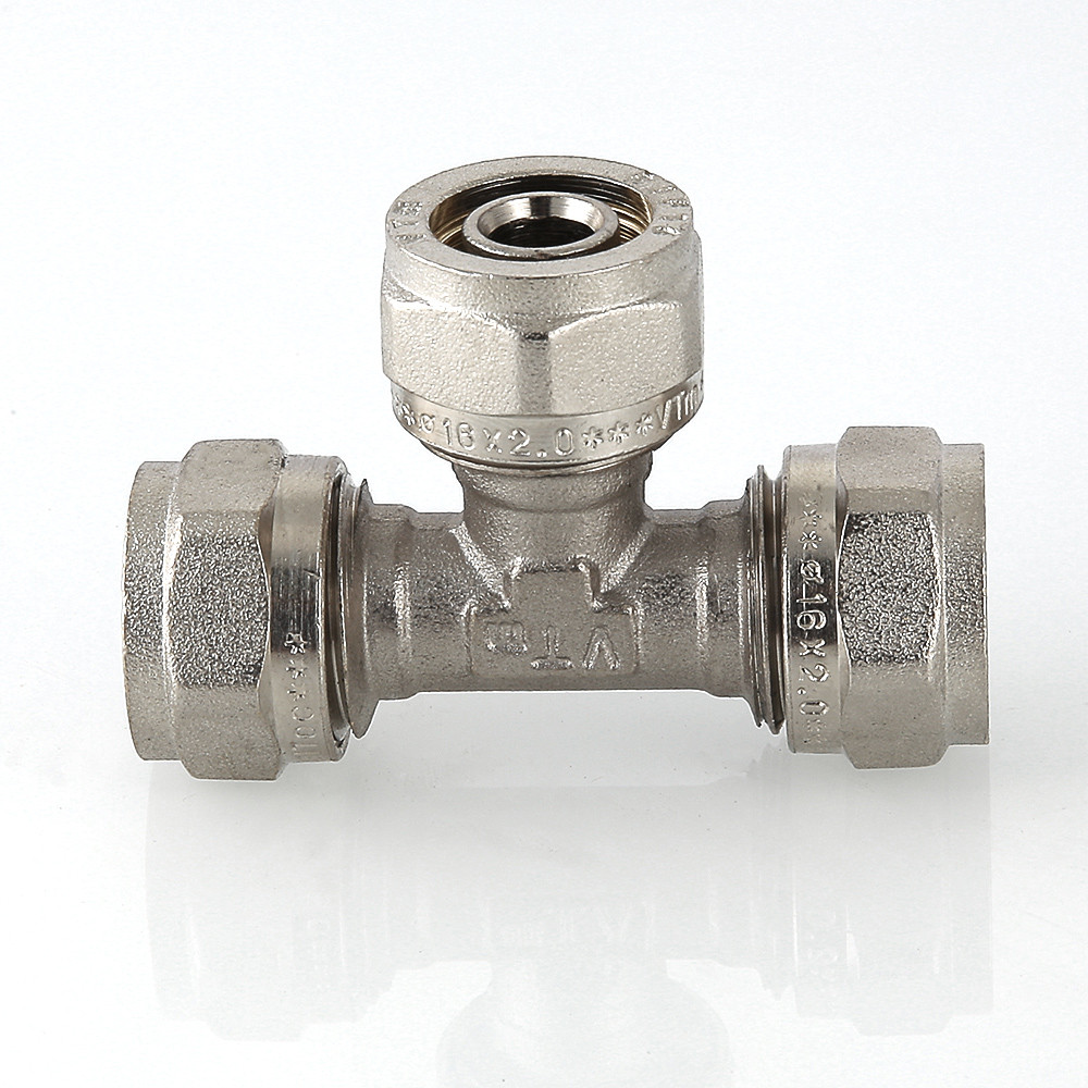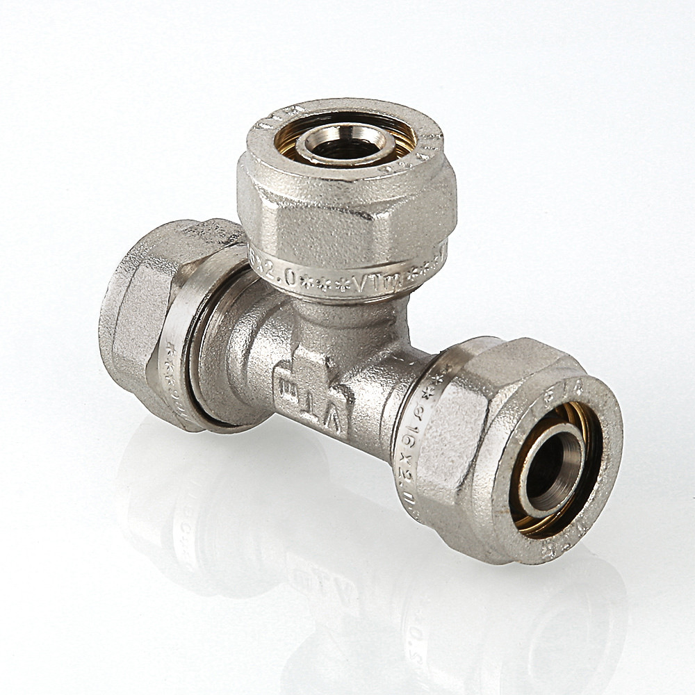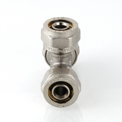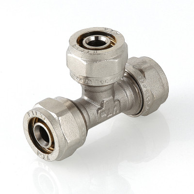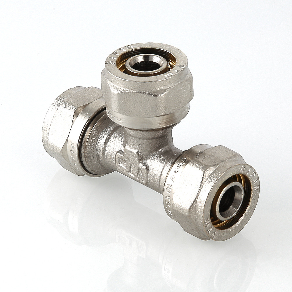 Фитинг обжимной – тройник латунный никелированный для соединения металлопластиковых (металлополимерных) труб. Имеются равнопроходные и переходные модели.