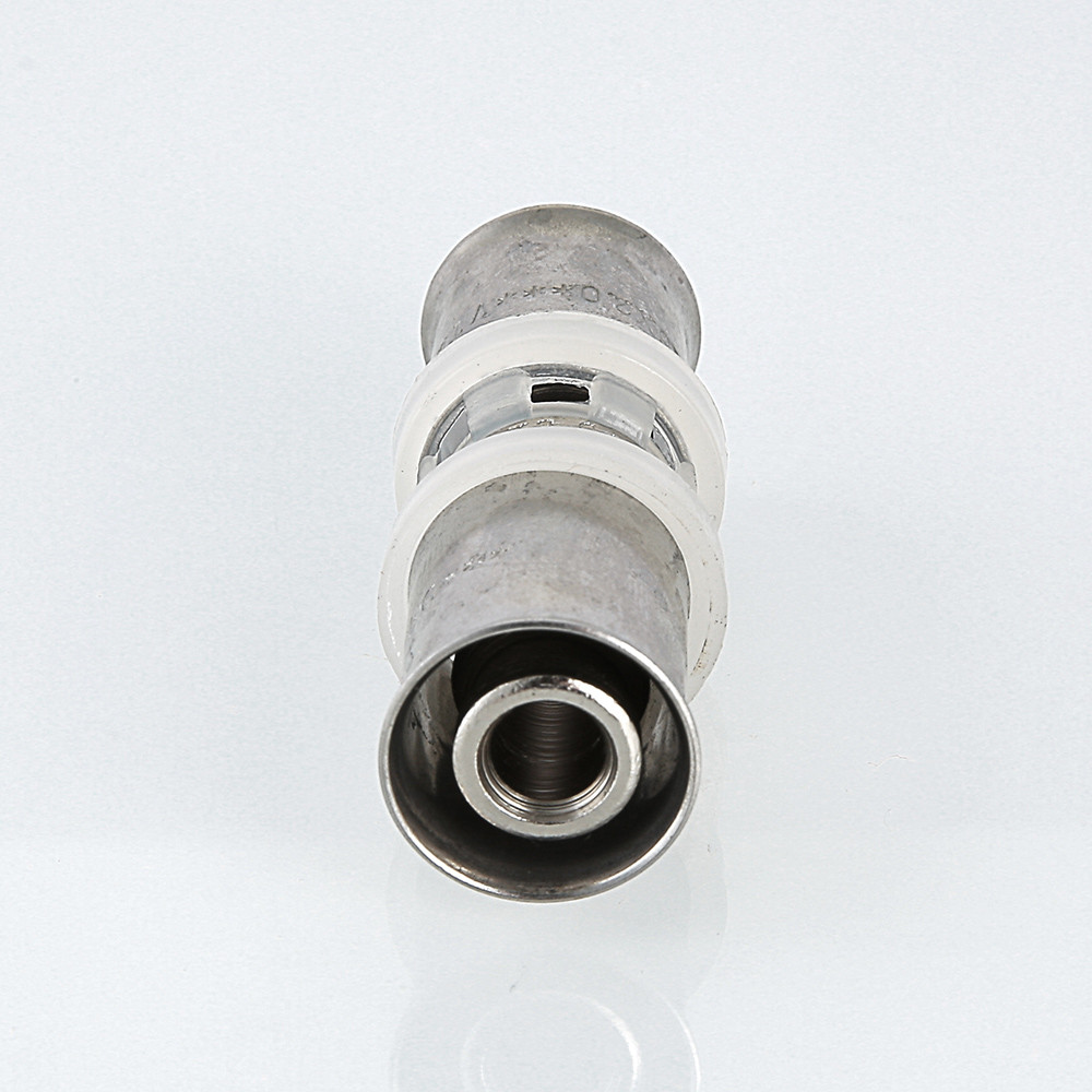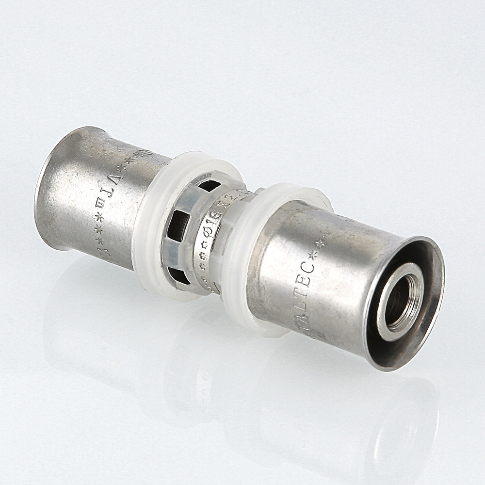 Прямой пресс-фитинг предназначен для соединения между собой металлополимерных или полиэтиленовых (РЕ-Х, PE-RT) труб. Переходные модели позволяют соединять трубы разного диаметра. Монтаж производится пресс-инструментом с насадками типа «ТН».