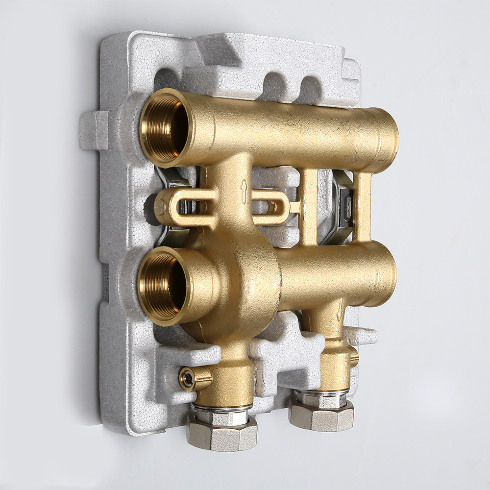 Модули быстрого монтажа VARIMIX – продуманные конструкторами, компактно собранные и теплоизолированные в заводских условиях арматурные узлы. Их применение позволяет до минимума сократить время проектирования и монтажа системы теплоснабжения объектов, избежать проектных и монтажных ошибок. При этом стоимость готового модуля ниже стоимости аналогичного по составу набора элементов, приобретаемых по отдельности. В системе VARIMIX модули VT VAR 30 служат для распределения теплоносителя к насосным группам и насосно-смесительным узлам отопительных контуров (к каждому модулю присоединяется один контур). Коллекторные модули могут последовательно соединяться между собой в блоки. Материал трубопроводов модуля – бронза марки OTS 60PB2 (EN 1982-00). Модули комплектуются встроенными шаровыми кранами (на отводах), теплоизоляцией из пенополистирола, средствами крепежа и полусгонами с накидными гайками для подключения насосных групп и насосно-смесительных узлов. Сборка коллекторов между собой и с гидравлическим разделителем VT VAR 00 (его применение рекомендуется VALTEC) осуществляется с помощью сдвоенного резьбового ниппеля VT 606 (диаметр – 1 1/4"). Условный диаметр отходящих патрубков – 32 мм. Максимальная тепловая мощность присоединенной системы – 104 кВт (при Δt = 20 °С).
