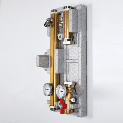 Назначение насосного модуля VT.VAR10 в системе групп быстрого монтажа VARIMIX – подключение высокотемпературного контура (радиаторного отопления, бойлера) к коллекторному модулю VT.VAR 30, обеспечение его работы. Входы модуля оборудованы дренажными кранами, ручными воздухоотводчиками, термометрами. Линия подачи оснащена также шаровым краном, «обратка» – обратным клапаном. Модуль комплектуется пенополистирольной теплоизоляцией черного цвета, крепежными кронштейнами из оцинкованной стали. Насос подбирается под гидравлические характеристики подключаемого контура, приобретается дополнительно (длина насоса – 180 мм). Трубопроводы модуля выполнены из бронзы марки OTS 60PB2. Резьба присоединительных патрубков – наружная, 1 1/4". Материал уплотнений – пероксидный EPDM. Максимальная рабочая температура – 120 °С, давление – 10 бар.