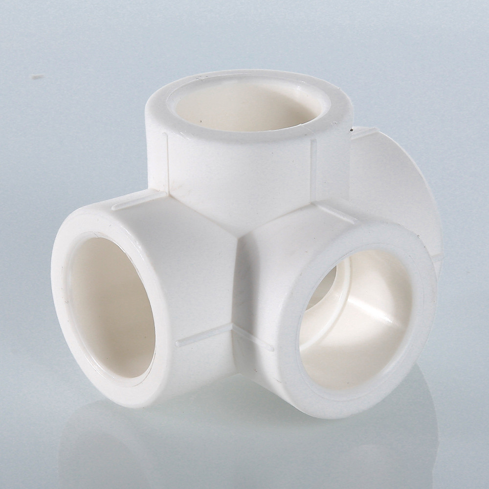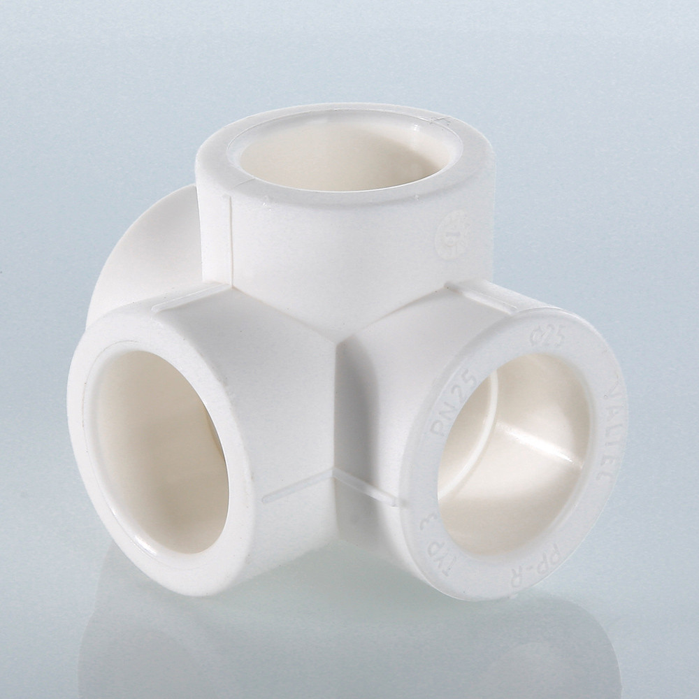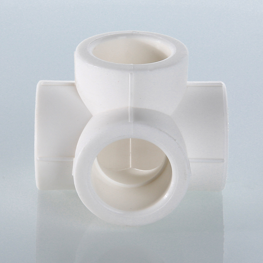 Полипропиленовый фитинг – крестовина двухплоскостная. Позволяет выполнять присоединение трубопроводов в двух взаимоперпендикулярных плоскостях. Равнопроходная. Монтаж производится методом раструбной сварки. Свариваемые поверхности – внутренние.