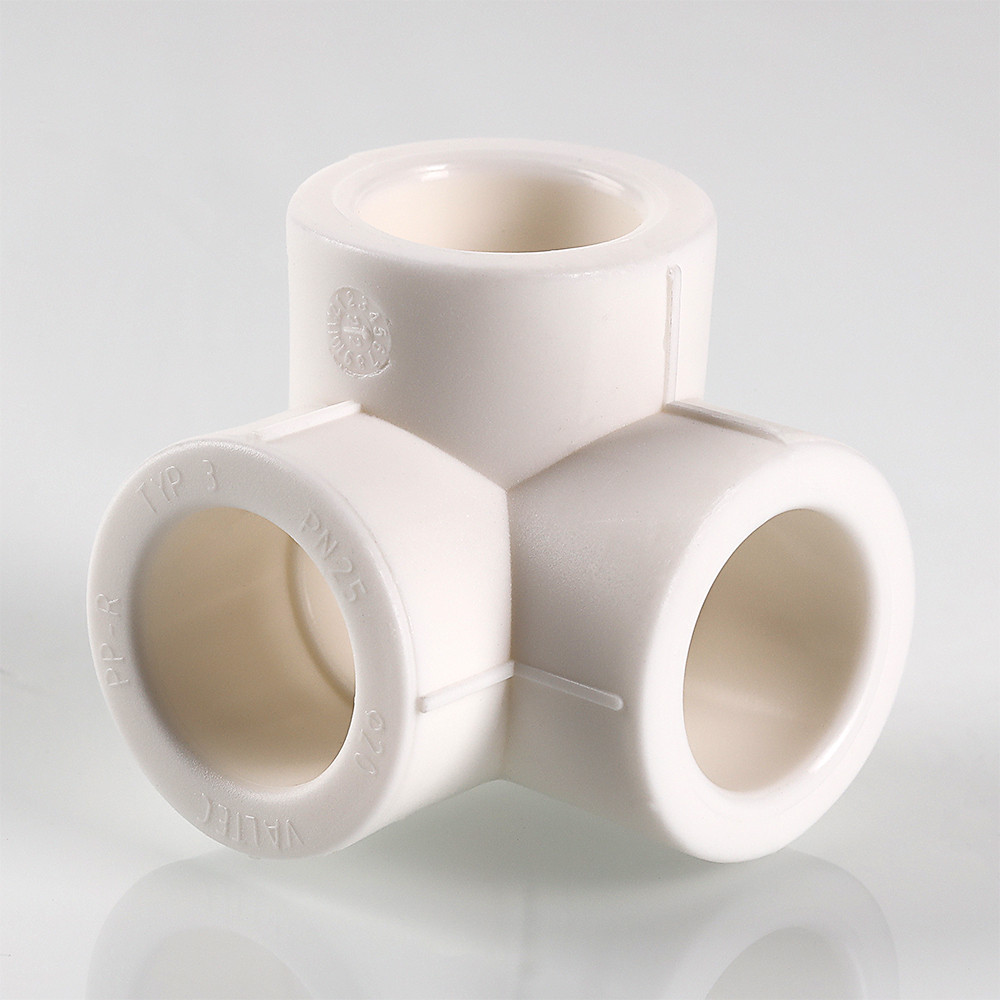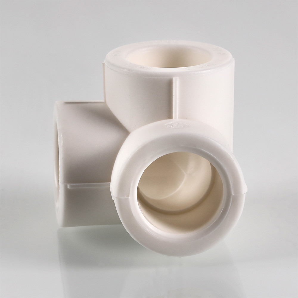 Полипропиленовый фитинг – тройник для разветвления полипропиленового трубопровода в двух плоскостях (тройник двухплоскостной). Монтаж производится методом раструбной сварки. Свариваемые поверхности – внутренние. Серия включает в себя фитинги с условным диаметром 20, 25 и 32 мм.