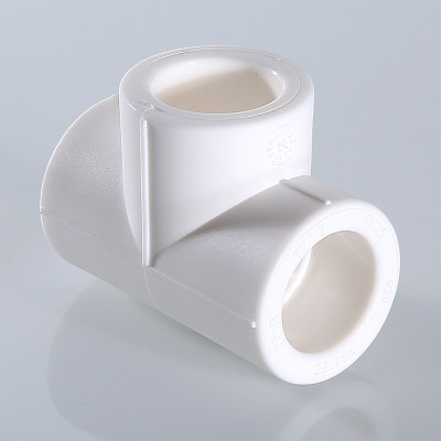 Трехсторонний равнопроходной фитинг для монтажа полипропиленовой трубопроводной системы методом раструбной сварки.
