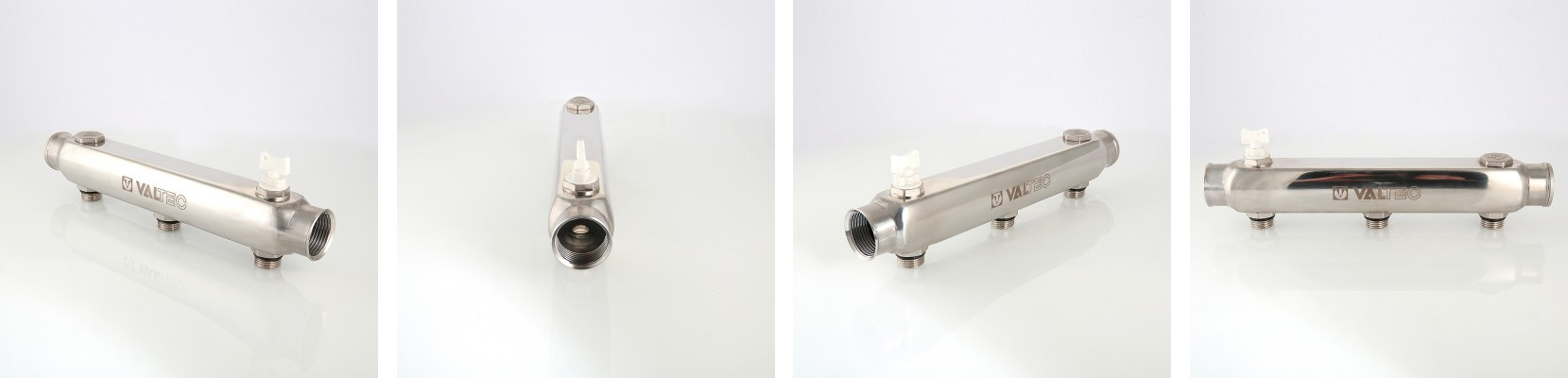 Коллекторы из нержавеющей стали VALTEC – продукция, заслужившая доверие специалистов в области инженерных систем и активно используемая ими в проектах, – благодаря преимуществам материала, выверенной конструкции, качеству изготовления и выгодной цене. Кроме того, большая, чем у латунных моделей того же условного диаметра, площадь поперечного сечения уменьшает влияние друг на друга потребителей, подключенных к коллектору из «нержавейки».