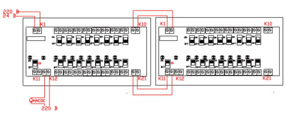 К11 – при объединении нескольких коммуникаторов принимает информацию о состоянии сервоприводов от соседнего коммуникатора для управления циркуляционным насосом;