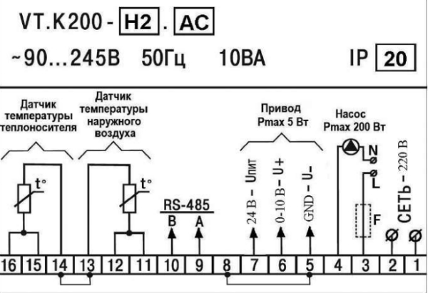 Рис. 8. Схема подключения контроллера VT.К200.М