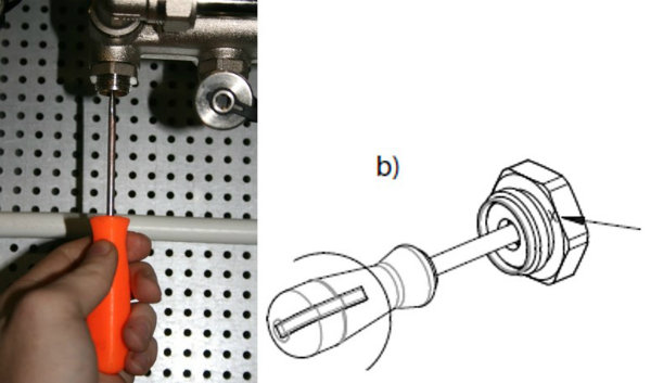 После плавно приоткрывать балансировочный клапан при помощи шестигранного ключа, фиксируя при этом изменение расхода теплоносителя. Как только расход теплоносителя будет соответствовать проекту зафиксировать положение клапана при помощи настроечного винта.