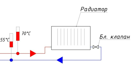 По примеру – после открытия клапана температура на подающем трубопроводе установилась 70 °С, температура на обратном трубопроводе установилась 55 °С.