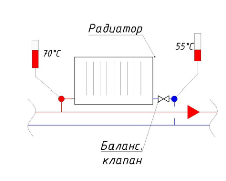 После берётся второй прибор по удалённости от котла. Балансировочный клапан на этом приборе открывается до тех пор пока температура на обратном трубопроводе не будет равна температуре первого ±5 °С.