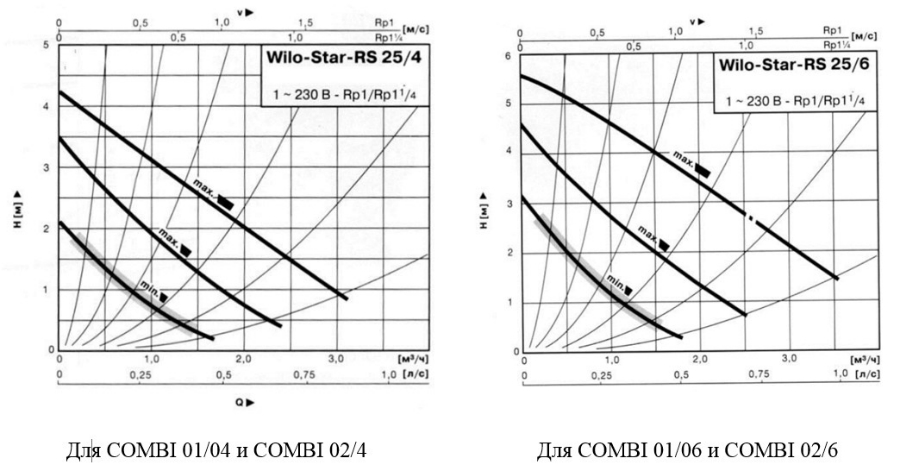 Потери давления в контурах после узла COMBIMIX с запасом 1 м вод. ст.: