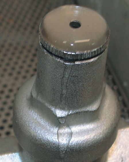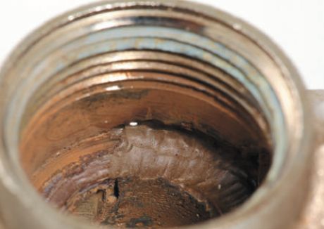 Износ уплотнений проявляет себя в появлении капель воды в вентиляционном отверстии пружинной камеры (рис. 2). Как правило, большинство современных квартирных регуляторов давлений ремонтопригодны, поэтому для устранения течи достаточно поменять кольца на поршне, очистить отложения на стенках поршневой камеры, и регулятор давления восстанавливает свою работоспособность.