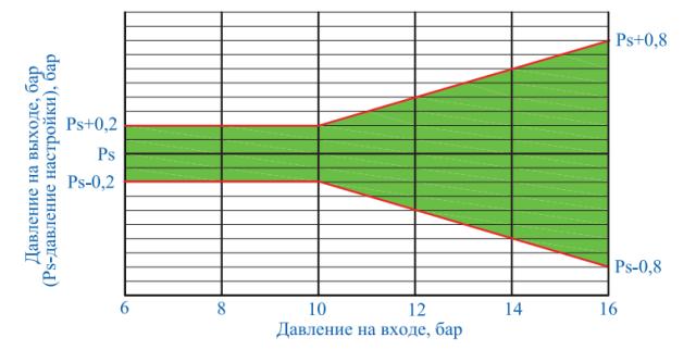 Рис. 9. Контрольная зона графика зависимости давления на выходе от входного давления