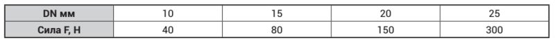 Таблица 2. Значение приложенной силы в зависимости от DN