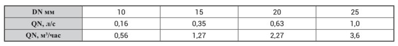 Таблица 3. Расход QN в зависимости от диаметра (DN)