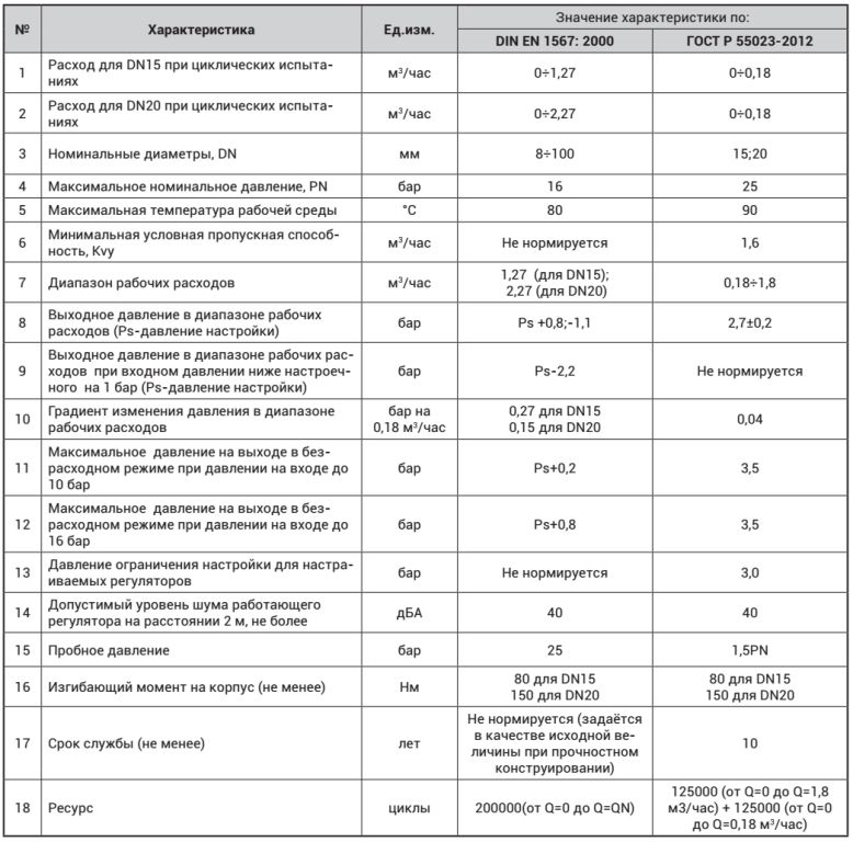 Из таблицы 4 видно, что в соответствии с ГОСТ Р 55023-2012 для редукторов давления должна определяться условная пропускная способность Kvу, чего в европейских нормах нет.