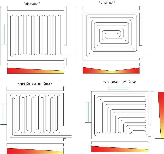 Рис. 3. Способы раскладки петель тёплого пола