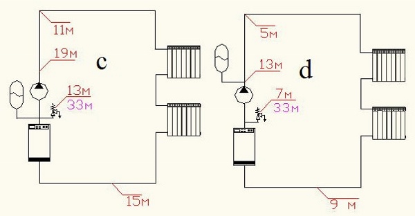 На рис. 1 приведено несколько вариантов присоединения мембранного бака к системе отопления со следующими высотными параметрами: