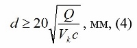 Диаметр подводящей линии к мембранному расширительному баку должен быть не менее рассчитанного по следующей формуле: