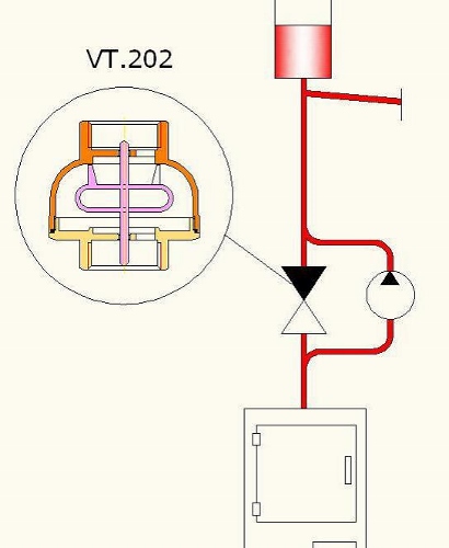 Миф 7. Насос, установленный на байпасе главного стояка, не создаст эффекта циркуляции, т.к. установка запорной арматуры на главном стояке междукотлом и расширительным баком запрещена. Можно поставить насос на байпасе обратной линии, а между врезками насоса установить шаровой кран. Такое решение не очень удобно, т.к. каждый раз перед включением насоса надо не забыть перекрыть кран, а после выключения насоса – открыть. Установка обычного пружинного обратного клапана невозможна из-за его значительного гидравлического сопротивления. Домашние мастера пытаются препарировать обратные клапаны, снимая с них пружинки совсем или устанавливая их «наоборот» (превращая клапан в нормально открытый). Такие переделанные клапаны создадут в системе неповторимые звуковые эффекты из-за постоянного «хлюпанья» с периодом, пропорциональным скорости теплоносителя.Есть гораздо более эффективное решение: на главном стояке между врезками байпаса устанавливается поплавковый обратный клапан для гравитационных систем VT.202 (рис. 9), который скоро появится в ассортименте VALTEC. Поплавок клапана в режиме естественной циркуляции открыт и не мешает движению теплоносителя. При включении насоса на байпасе клапан перекрывает главный стояк, направляя весь поток через байпас с насосом.