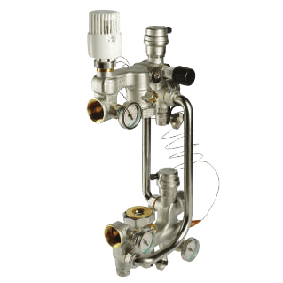 В линии подмеса узла установлен балансировочный клапан, который задаёт соотношение между количествами теплоносителя, поступающего из обратной линии вторичного контура и прямой линии первичного контура, а также уравнивает давление теплоносителя на выходе из контура тёплых полов с давлением после термостатического регулировочного клапана.