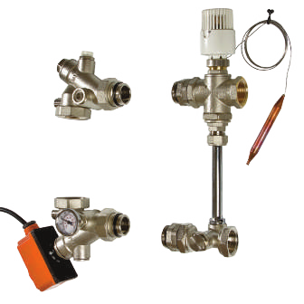Вместо термоголовки может быть установлен аналоговый термоэлектрический сервопривод VT.TE3061, работающий под управлением контроллера VT.K200.М. Узел поставляется без циркуляционного насоса.