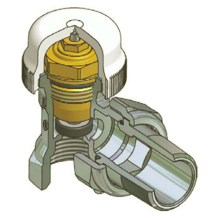 Повышенный допустимый перепад давления в клапанах VALTEC и Giacomini достигнут за счёт принципиально иной конструкции золотниковых узлов. В частности, у клапанов VT.031 использован латунный золотниковый плунжер, «футерованный» эластомером EPDM (рис. 12).