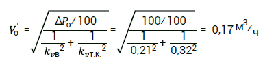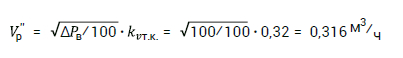 где Vо′ – общий расход в системе после отключения одного термостатического клапана, м3/ч, Vp′ – расход теплоносителя через радиатор, в данном случае он будет равен общему расходу; м3/ч.