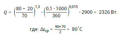 Насколько же измениться мощность отопительного прибора при таком увеличении расхода? Теплоотдача Q секционного радиатора считается по формуле:
