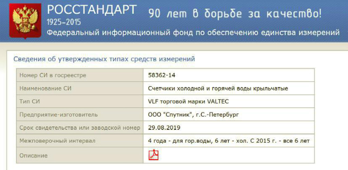 Рис. 2. Паспорт квартирного водосчетчика