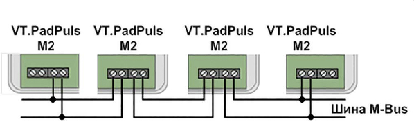 Рис. 2. Подключение приборов учета к преобразователю импульсов VT.PadPuls.M2