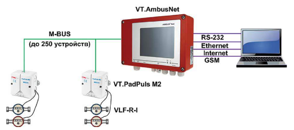 - Передачу данных в систему диспетчеризации по протоколу M-Bus.