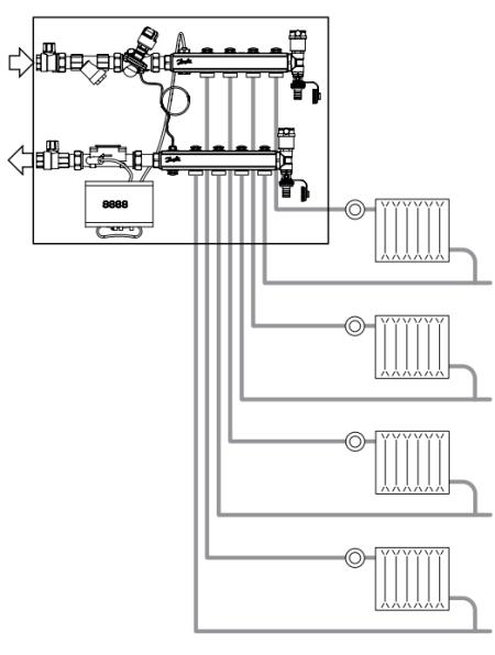 Как правило, клапаны устанавливаются перед этажными коллекторными узлами (рис. 2), перед квартирными станциями или на стояках систем отопления.