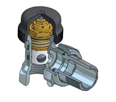 Но производители радиаторной арматуры решили внедрить более экономичное решение и соединить эти два клапана в один корпус. Так получился клапан с перенастройкой (рис. 10). Это устройство объединяет в себе функции термостатического и настроечного клапанов.