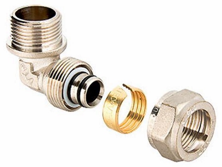 Соединение с помощью обжимных фитингов является наиболее доступным для большинства монтажников. Для его исполнения требуется минимальный набор инструментов: два рожковых ключа и калибр. Даже несмотря на то, что обжимное соединение является разборным, то есть требует периодического обслуживания (подтяжки накидной гайки), спрос на обжимные фитинги в несколько раз превышает спрос на неразъемные соединители.