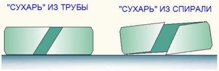 «Сухарь» соединителей VTm.300 выполняется из латунной оребренной трубы. В продаже можно встретить обжимные фитинги, где обжимное кольцо изготовлено из латунной ленты, навитой в спираль (рис. 10). Такое кольцо больше похоже на пружинную шайбу Гровера. При затяжке гайки вместо аксиального обжима кольцо начинает сдирать верхний слой металлопластиковой трубы, что может привести к ее повреждениям.