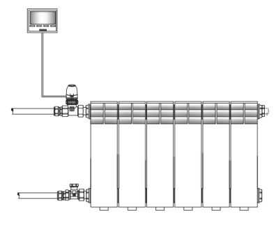 Чтобы отопительный прибор оперативно реагировал на изменяющуюся температуру воздуха в помещении логичнее установить на радиатор термостатический клапан (рис. 6).