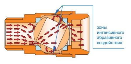 Результатом может быть выход шарового крана из строя значительно раньше расчетного срока эксплуатации.